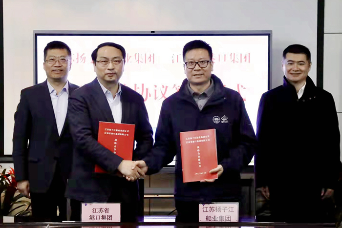 12月21日,揚(yáng)子江船業(yè)集團(tuán)與江蘇省港口集團(tuán)有限公司戰(zhàn)略合作協(xié)議簽訂儀式在南京下關(guān)大廈舉行。江蘇省港口集團(tuán)有限公司副總經(jīng)理譚瑞兵先生,我集團(tuán)副董事長張宏飛先生代表雙方簽署了戰(zhàn)略合作協(xié)議。江蘇省港口集團(tuán)黨委副書記、總經(jīng)理關(guān)永健先生,我集團(tuán)董事長兼總經(jīng)理任樂天先生,江蘇蘇港航務(wù)工程有限公司執(zhí)行董事金志忠先生等嘉賓共同見證。