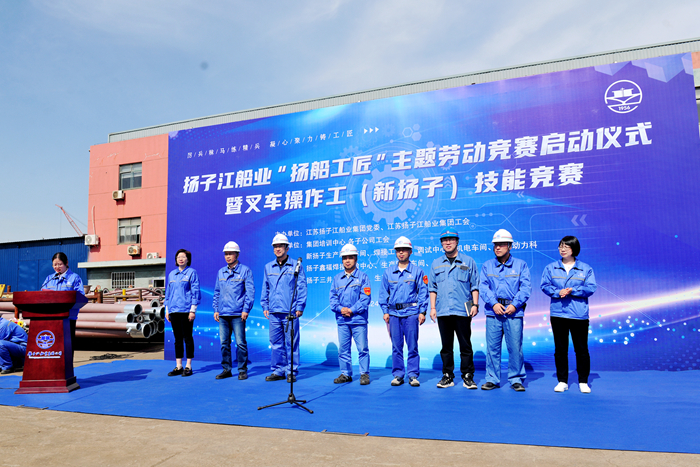 4月24日,揚子江船業(yè)“揚船工匠”主題勞動競賽啟動儀式暨叉車操作工(新?lián)P子)技能競賽在新?lián)P子造船舉行。集團副總經(jīng)理兼新?lián)P子造船總經(jīng)理杜成忠,新?lián)P子造船副總經(jīng)理倪榮,新?lián)P子造船總經(jīng)理助理茆宏兆,揚子鑫福造船總經(jīng)理助理劉銀君,集團技術(shù)中心技術(shù)部部長蔣才平,新?lián)P子質(zhì)量管理部部長唐松,揚子鑫福造船工會主席陳紅,揚子三井造船工會主席司凌鈺,以及各造船子公司相關(guān)承辦車間部門領(lǐng)導(dǎo)、參賽職工代表和裁判員代表等參加啟動儀式。