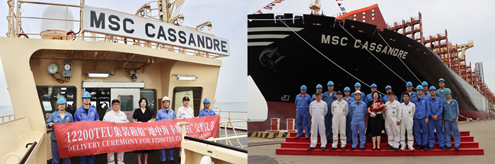 6月1日,我集團為SEASPAN船東建造的第五艘12200TEU超大型集裝箱船——“MSCCASSANDRE”輪,離開船廠碼頭,開啟首航。5月30日,通過多方視頻會議方式,“MSC CASSANDRE”輪完成云交付。揚子三井司凌鈺女士受邀擔任新船命名人,為新船命名并砍纜祈福。