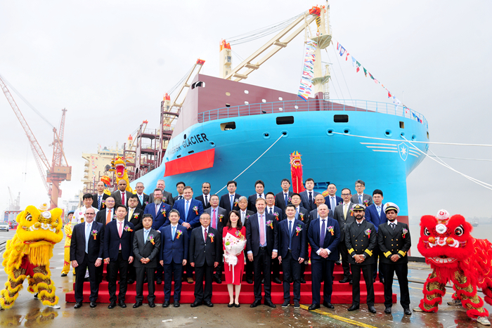 5月31日中午,“MAERSKGLACIER”輪,從船廠碼頭解纜啟航,投入運(yùn)營(yíng)。