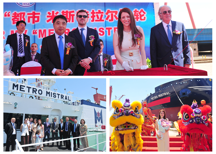 7月1日,我集團(tuán)與METROSTAR船東共同為新船舉行了隆重的命名祈福儀式。命名人Maria Selvesaki女士,METROSTAR執(zhí)行董事Theodoros Angelopoulos先生、Dimitrios Angelopoulos先生,挪威船級社江陰站經(jīng)理史勇林先生,百力馬船舶經(jīng)紀(jì)公司商務(wù)總監(jiān)林峰女士,我集團(tuán)副總經(jīng)理兼新?lián)P子造船總經(jīng)理杜成忠先生、集團(tuán)副總經(jīng)理吉宏飛先生,以及HYDRUS監(jiān)造公司、船檢、船廠、船員相關(guān)人員代表及嘉賓出席了儀式。命名人Maria Selvesaki女士將新船命名為“METRO MISTRAL”輪,為新船砍纜、擲香檳禮、拉響汽笛,并與嘉賓共同登船參觀,祝福隨船船員航行平安,為船東以及相關(guān)合作方帶來榮譽和財富。