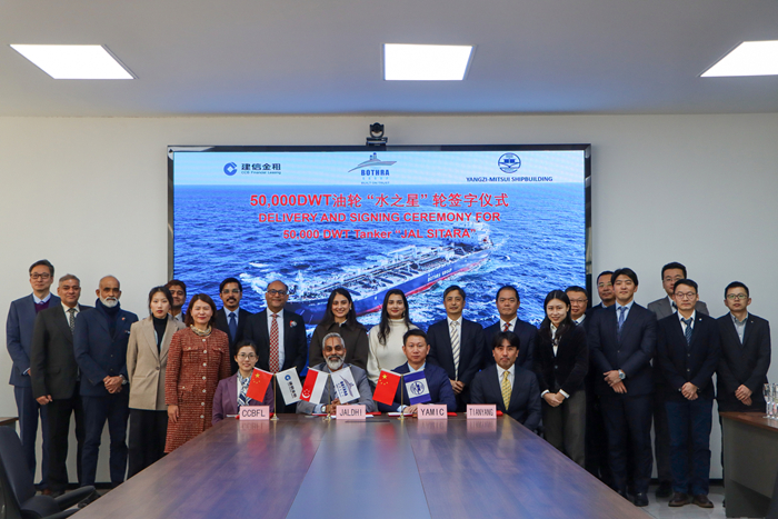 1月7日,我集團揚子三井造船為新加坡船東建造的第六艘新一代綠色環(huán)保型50000DWT MR油輪“JAL SITARA”輪交付離廠,開啟首航。