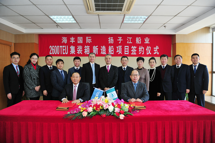 我集團與海豐國際本年度第三次合作,12月19日,雙方共同簽署6+2+2艘2600TEU集裝箱新造船建造合同。集團董事長任樂天先生,集團副總經(jīng)理杜成忠先生、張濤先生,海豐國際董事局副主席兼首席執(zhí)行官楊現(xiàn)祥先生攜夫人,海豐航運集團副總裁肖森元先生,上海海事大學校長陸靖先生,上海海事大學商船學院黨委書記曹紅奮女士,上海海事大學商船學院院長肖英杰先生,上海船舶研究設(shè)計院院長呂智勇先生等共同見證新訂單成功簽約。