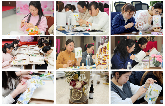 巧手匠心,創(chuàng)意無(wú)限。女職工們?cè)趯I(yè)老師的指導(dǎo)下,親手制作了精美的古法壓花臺(tái)燈、蝶古巴特手工包和植物香薰。大家充分發(fā)揮創(chuàng)意,制作出獨(dú)一無(wú)二的作品。手工制作不僅讓大家體驗(yàn)到了動(dòng)手的樂趣,也增進(jìn)了同事之間的交流與互動(dòng)。活動(dòng)結(jié)束后,大家拿著自己親手制作的作品,臉上洋溢著滿足的笑容。