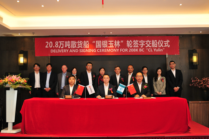 Mr. Liu Yuguan, Deputy General Manager of BOC Financial Leasing Shipping Business Department, Mr. Du Chengzhong, Deputy General Manager of YANGZIJIANG Shipping Group and Mr. Zhang Tao, Deputy General Manager of YANGZIJIANG Shipping Group signed the delivery documents the same day on behalf of each party in the presence of representatives from all sides.The m.v. CL Yulin was successfully delivered. On the afternoon of November 10, the m.v. CL Yulin (State Bank of China Yulin) commenced its maiden voyage, the newest addition to the ship leasing business of Bank of China.