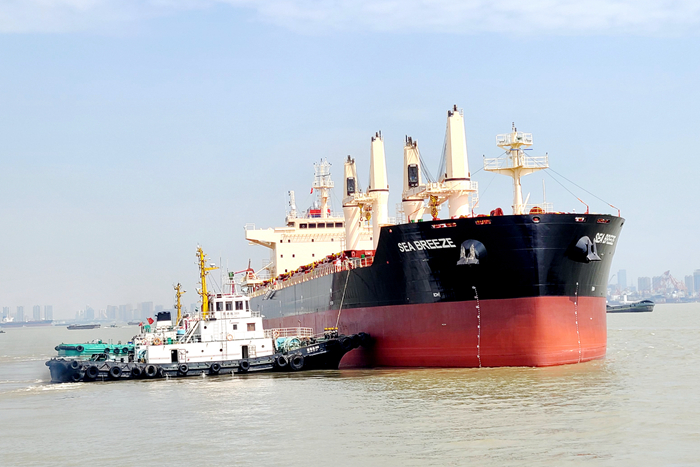 4月16日,我集團(tuán)新?lián)P子造船有限公司為SEA BREEZE GMBH & CO. KG船東建造的一艘38500DWT散貨船,通過電簽的方式完成交付。該船于4月20日下午14時(shí)離廠,開啟首航。