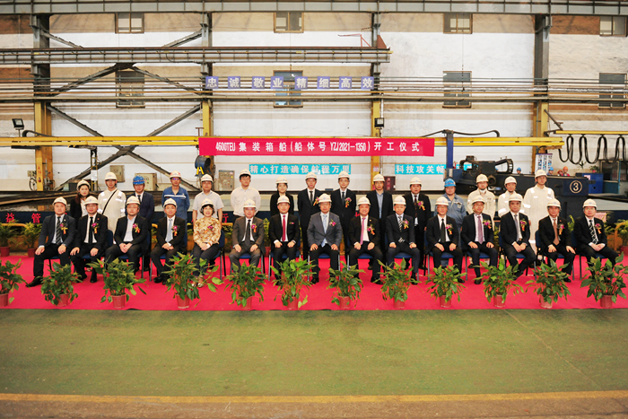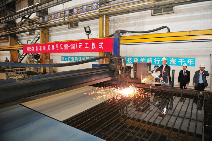 As Mr. Xia Guoqing, Vice President of Zhonggu Shipping Group, pressed the ignition start button at 11: 18 a.m. of May 10th, 10 4600TEU container ships of Zhonggu Logistics undertaken by our group started construction smoothly at Processing Workshop of NYZ.