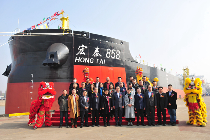 Godmother, Ms. Wu Huiying christened the new ship "Hongtai 858" by cutting the line praying for its maiden voyage as well as more wealth to shipowners. Mr. Han Zhidong, the General Manager of Shanghai Ganglu Shipping, Mr. Du Chengzhong, the Deputy General Manager and Mr. Zhang Tao, the Deputy General Manager of our group signed the delivery documents on behalf of each party. On Dencember 13, "Hongtai 858" departed from NYZ wharf for its maiden voyage.