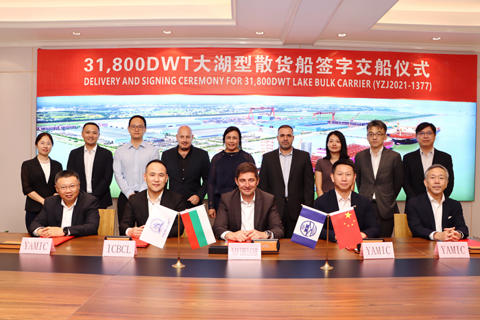 On August 2, Yangzi Mitsui successfully named and delivered the second 31800DWT large lake bulk carrier "SLAVYANKA" (under the flag of Malta) built for the Bulgarian national shipping company NAVIBULGAR.